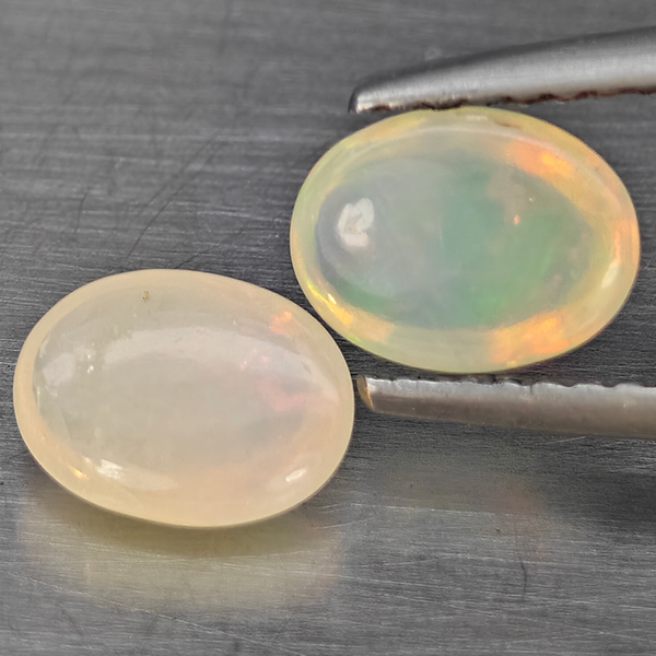 Natural Multi Color Play Of Colour Opal 1.21 Ct. 2 Pcs Oval Cabochon Shape Gemstones From Ethiopia