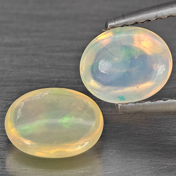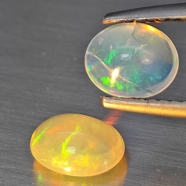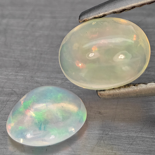 Natural Multi Color Play Of Colour Opal 1.24 Ct. 2 Pcs Oval Cabochon Shape Gemstones From Ethiopia