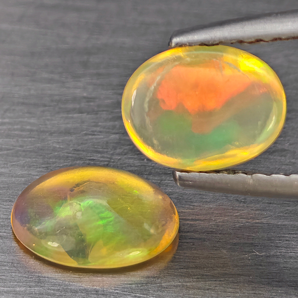 Natural Multi Color Play Of Colour Opal 1.15 Ct. 2 Pcs Oval Cabochon Shape Gemstones From Ethiopia