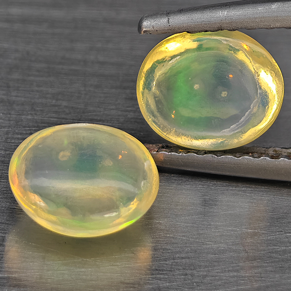 Natural Multi Color Play Of Colour Opal 1.16 Ct. 2 Pcs Oval Cabochon Shape Gemstones From Ethiopia