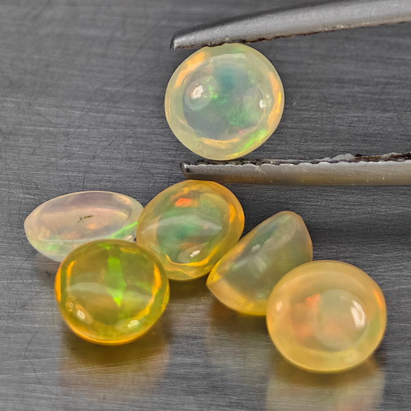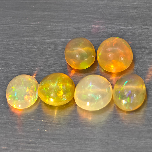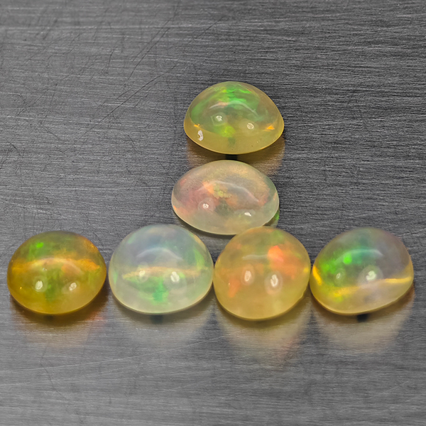Natural Multi Color Play Of Colour Opal 2.50 Ct. 6 Pcs Oval Cabochon Shape Gemstones From Ethiopia