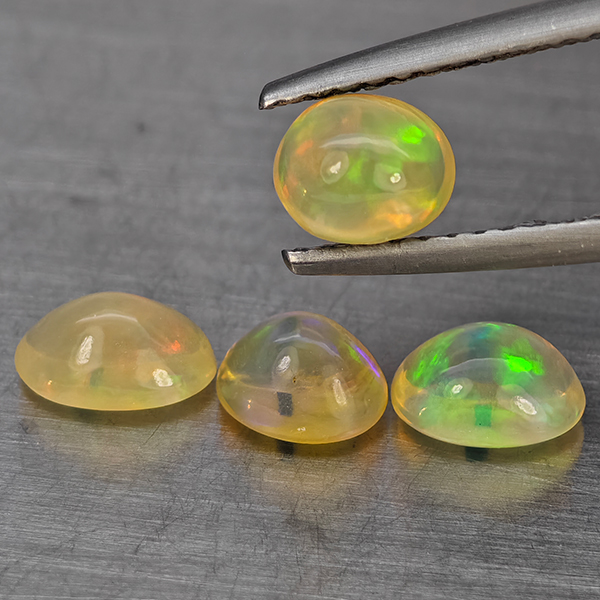Natural Multi Color Play Of Colour Opal 1.62 Ct. 4 Pcs Oval Cabochon Shape Gemstones From Ethiopia