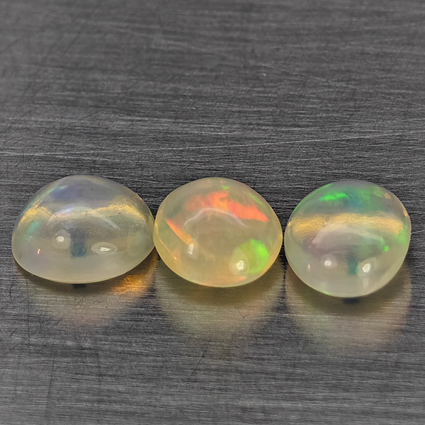 Natural Multi Color Play Of Colour Opal 1.01 Ct. 3 Pcs Oval Cabochon Shape Gemstones From Ethiopia