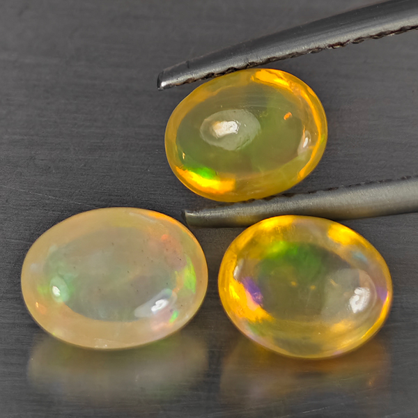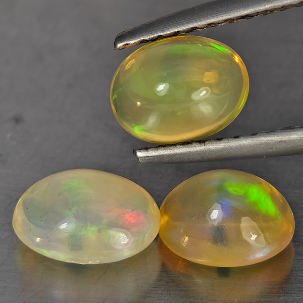 Natural Multi Color Play Of Colour Opal 2.10 Ct. 3 Pcs Oval Cabochon Shape Gemstones From Ethiopia
