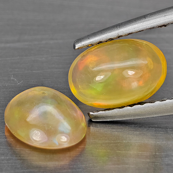 Natural Multi Color Opal 1.60 Ct. 2 Pcs Oval Cabochon Shape 8.1 x 5.5 Mm Gemstones From Ethiopia