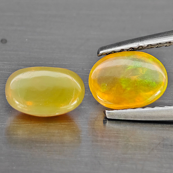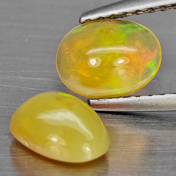 Natural Multi Color Opal 1.23 Ct. 2 Pcs Oval Cabochon Shape 7.3 x 4.6 Mm Gemstones From Ethiopia