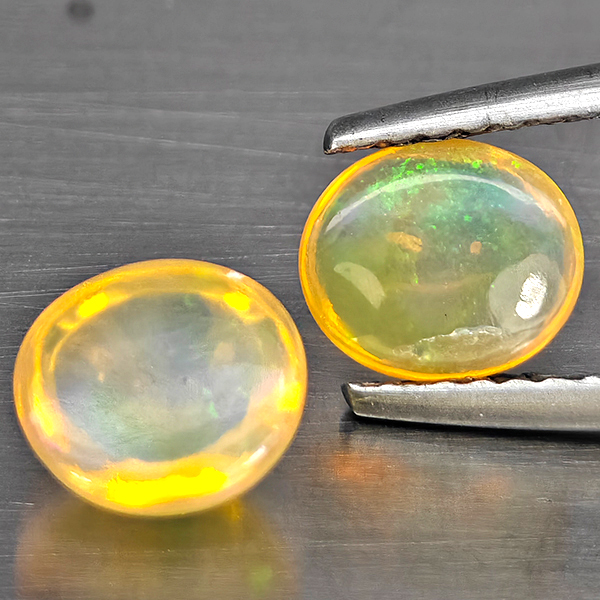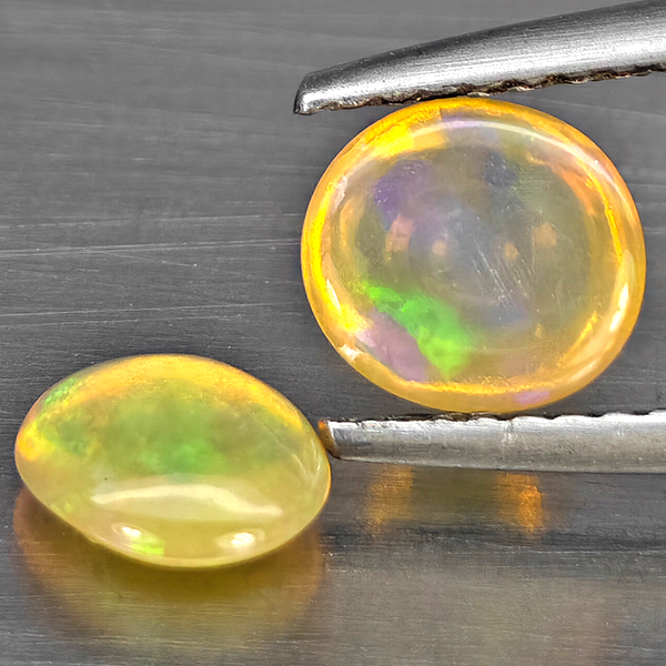 Natural Multi Color Opal 1.13 Ct. 2 Pcs Oval Cabochon Shape 6.7 x 6.1 Mm Gemstones From Ethiopia