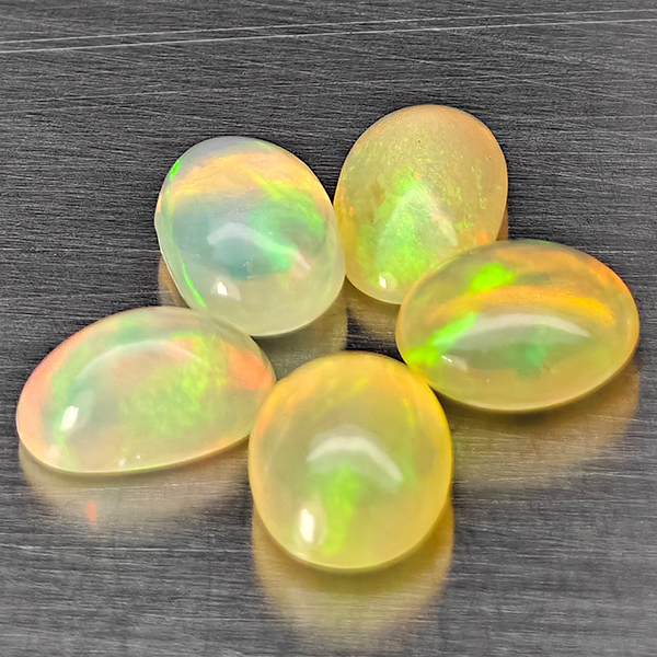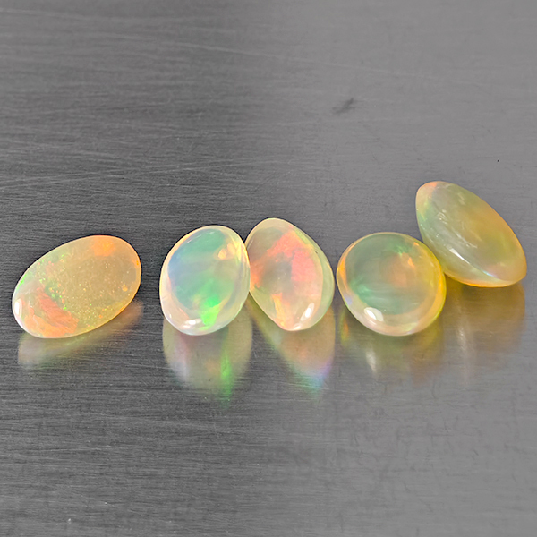 Natural Multi Color Opal 2.33 Ct. 5 Pcs Oval Cabochon Shape 6.3 x 4.2 Mm Gemstones From Ethiopia