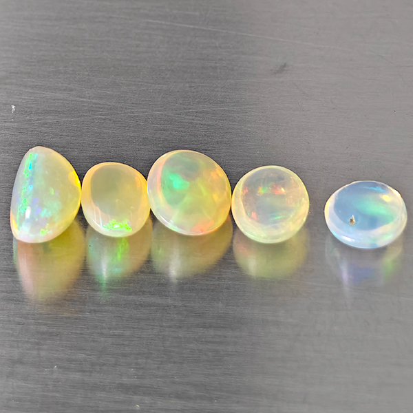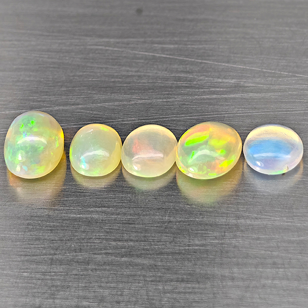 Natural Multi Color Opal 2.41 Ct. 5 Pcs Oval Cabochon Shape 6.1 x 4.1 Mm Gemstones From Ethiopia