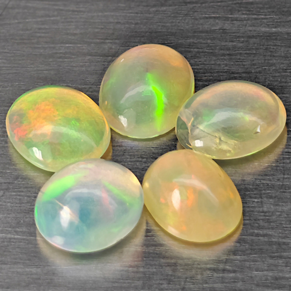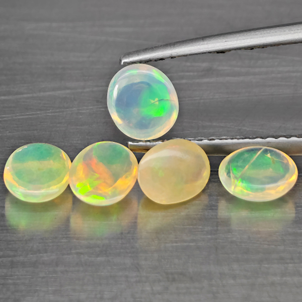 Natural Multi Color Opal 1.69 Ct. 5 Pcs Oval Cabochon Shape 5.7 x 4.8 Mm Gemstones From Ethiopia
