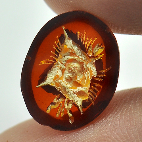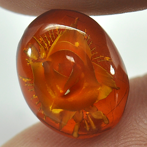 1.65 Ct. Flower Carving In Natural Brown Yellow Amber