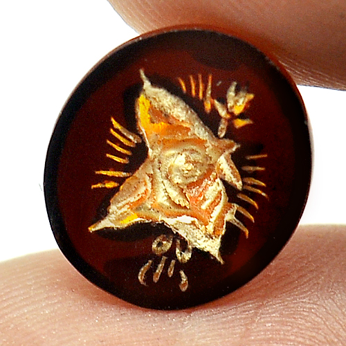 1.05 Ct. Flower Carving In Natural Brown Yellow Amber