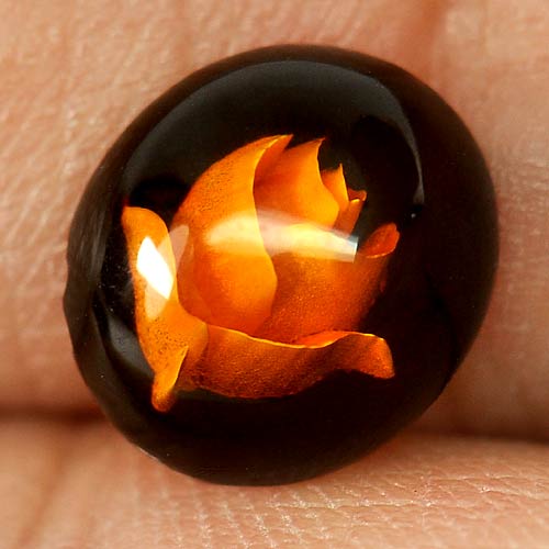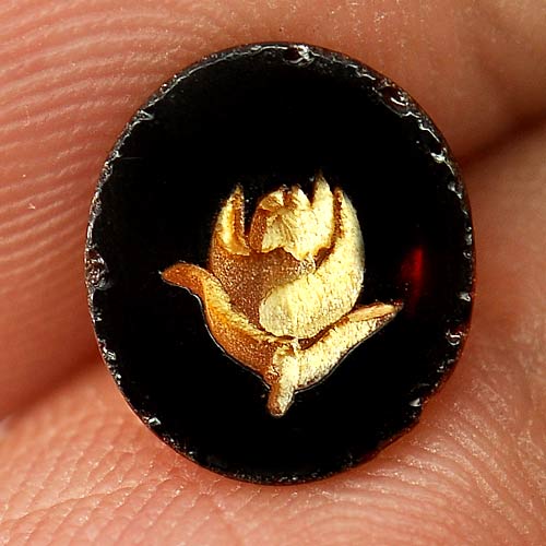 Natural Gem 0.80 Ct. Nice Oval Cabochon Flower Carving In Brown Yellow Amber