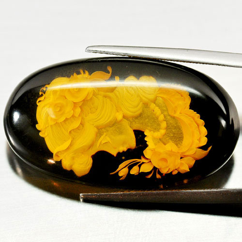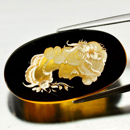 Amber 13.00 Ct. Woman Caring Oval Cabochon 31 x 17.8 Mm. Natural From Poland