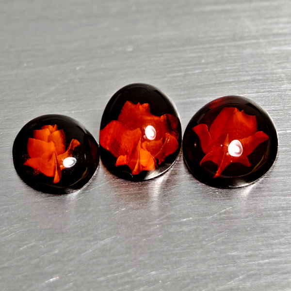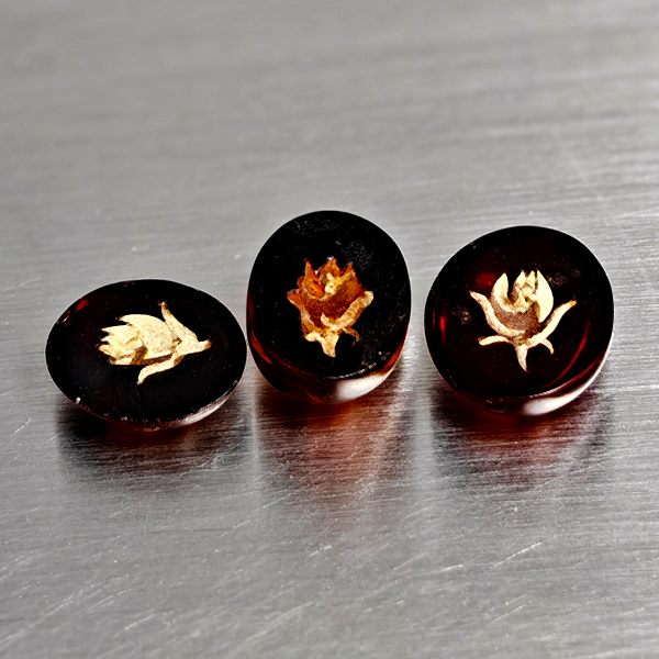 Natural Brown Yellow Amber 1.22 Ct. 3 Pcs Flower Carving In Oval Cabochon Shape
