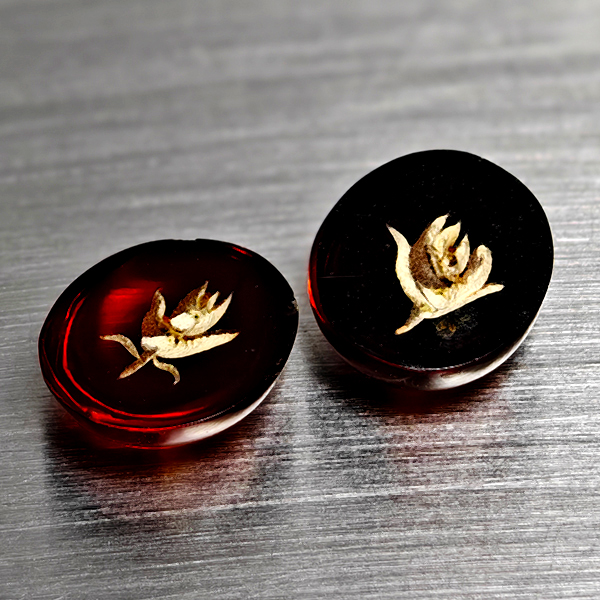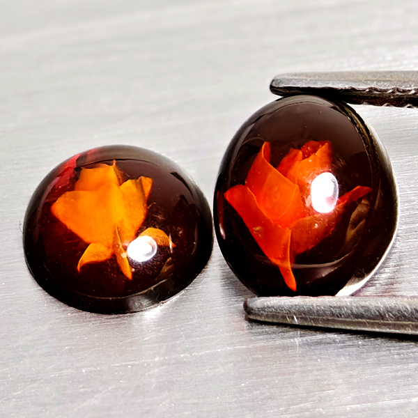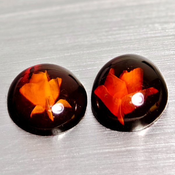 Natural Brown Yellow Amber 1.00 Ct. 2 Pcs Flower Carving In Oval Cabochon Shape