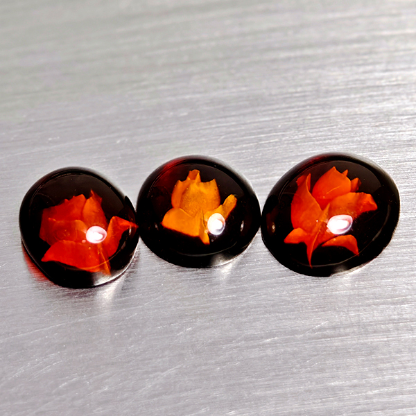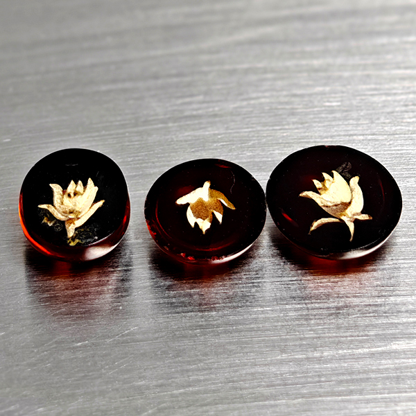 Natural Brown Yellow Amber 1.31 Ct. 3 Pcs Flower Carving In Oval Cabochon Shape