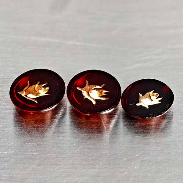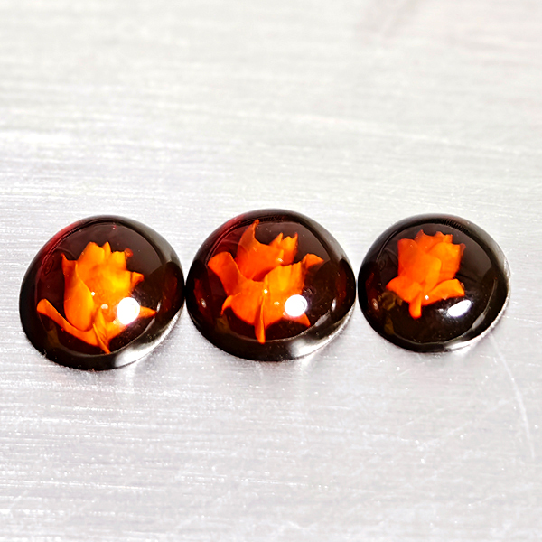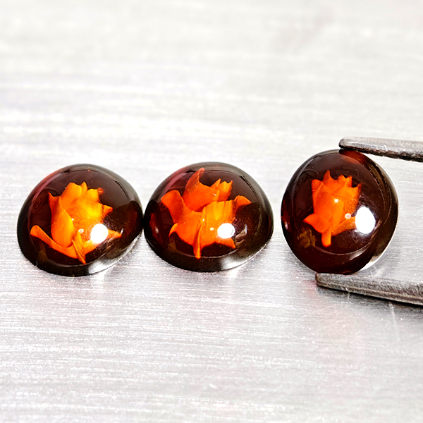 Natural Brown Yellow Amber 1.43 Ct. 3 Pcs Flower Carving In Oval Cabochon Shape