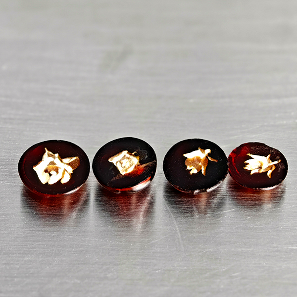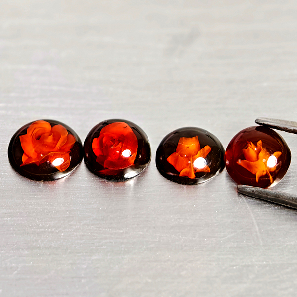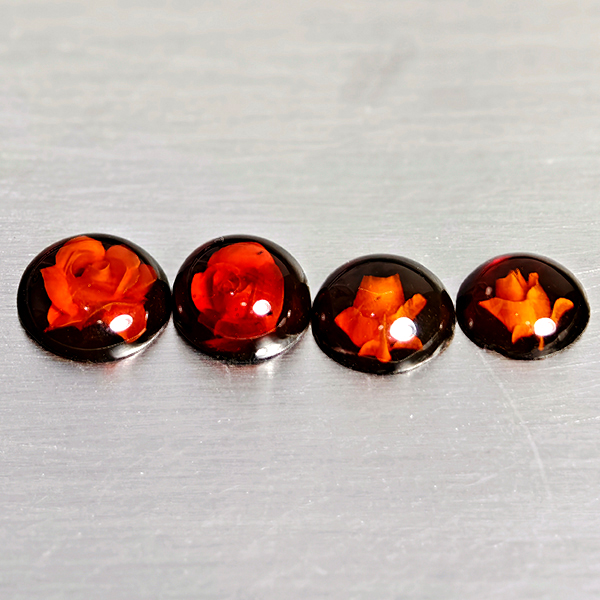 Natural Brown Yellow Amber 1.28 Ct. 4 Pcs Flower Carving In Round Cabochon Shape