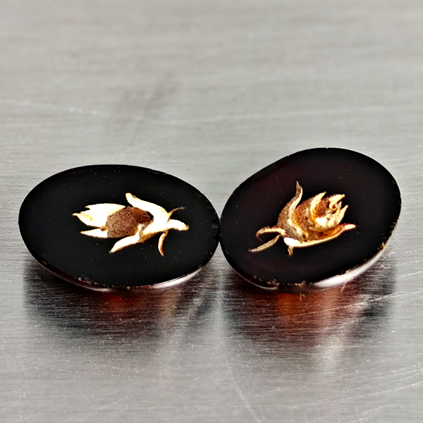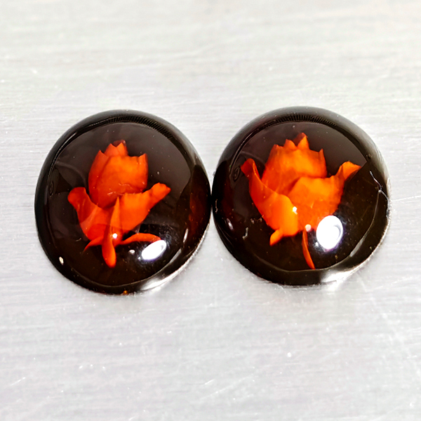 Natural Brown Yellow Amber 1.08 Ct. 2 Pcs Flower Carving In Oval Cabochon