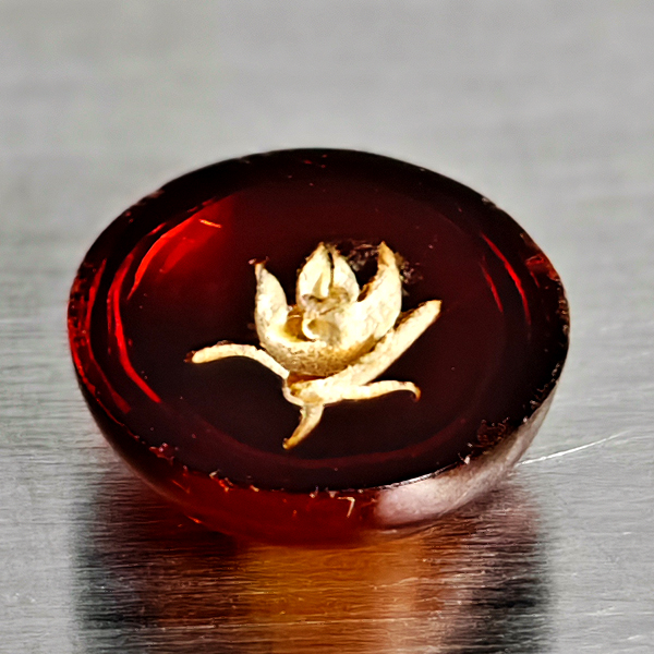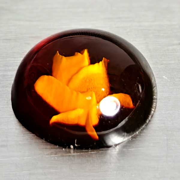 Natural Brown Yellow Amber 0.60 Ct. Flower Carving In Round Cabochon Shape 8 Mm