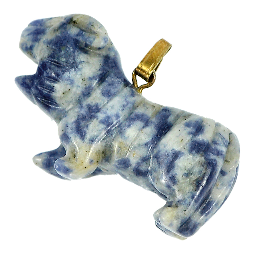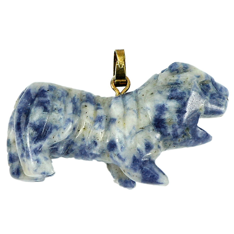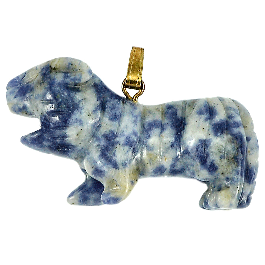 Blue White Sodalite Tiger Carving with Nickel Pendant 43.27Ct. Natural Gemstone