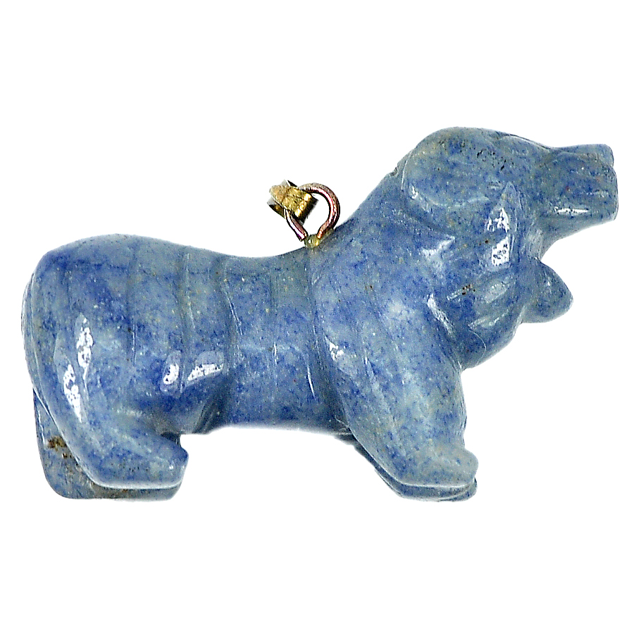Blue Stone Tiger Carving with Pendant 50.55 Ct. Unheated Natural Gemstone