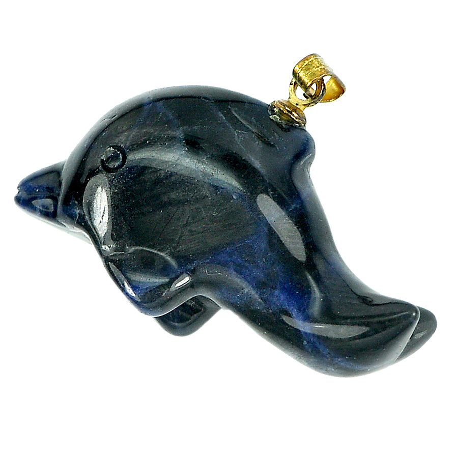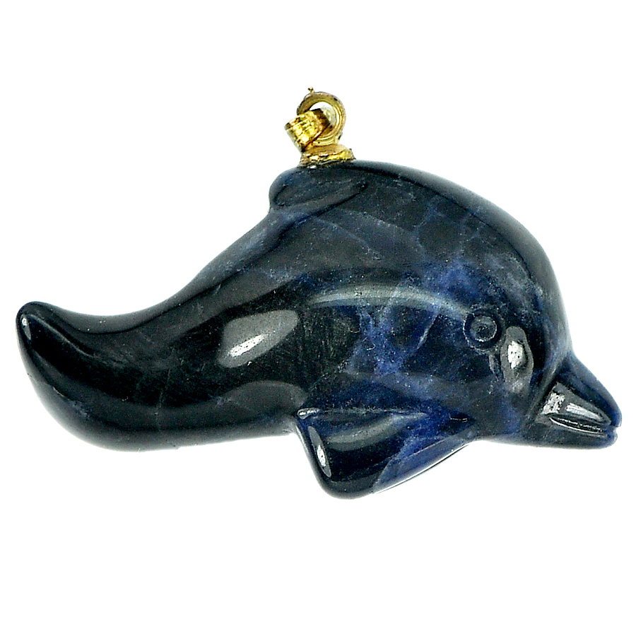 Blue Sodalite Dolphin Carving with Nickel Pendant 38.19 Ct. Natural Gemstone
