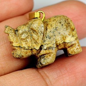 24.96Ct Natural Elephant Carving Picture Jasper Pendant