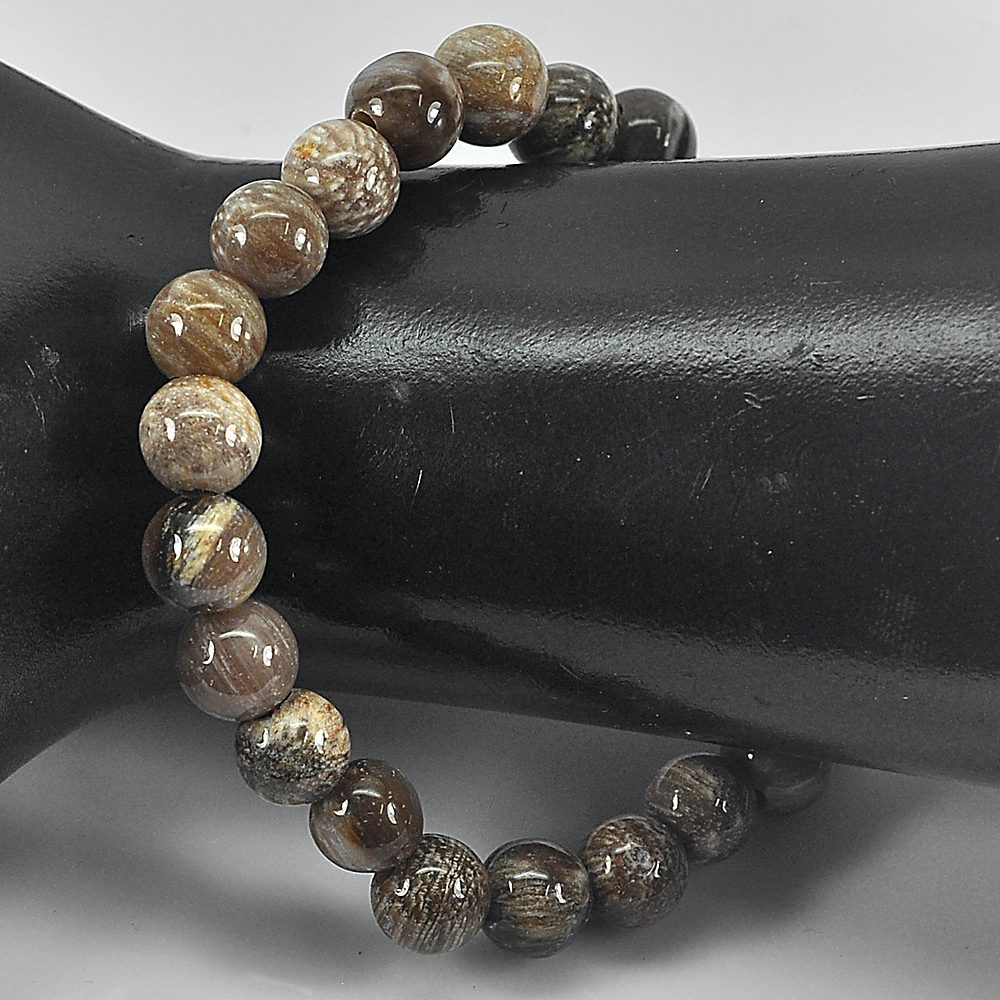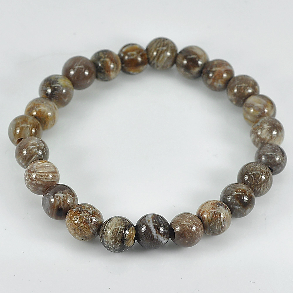 86.52 Ct. Natural Petrified Wood Brown Unique Pattern Bracelet 8 Inch. Unheated