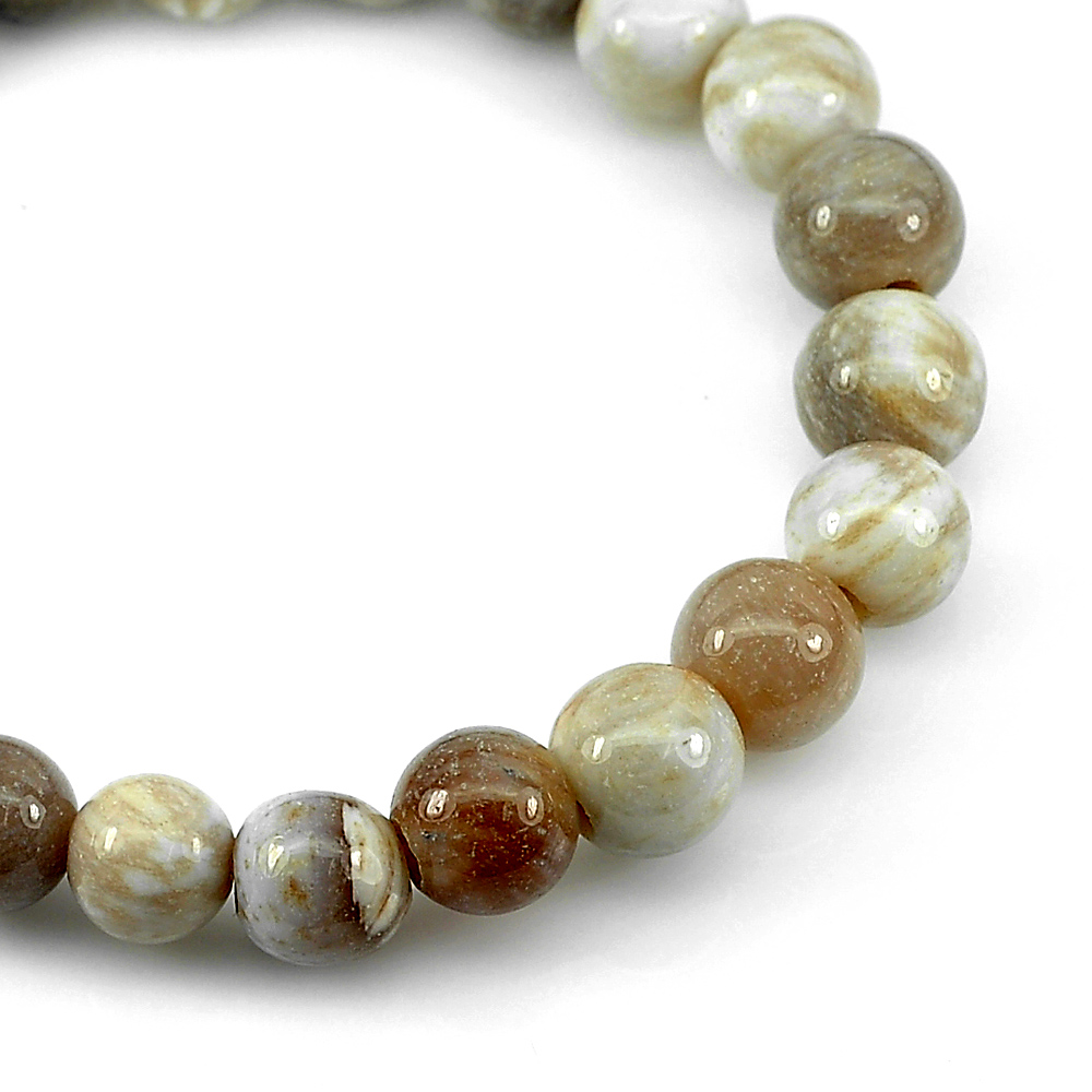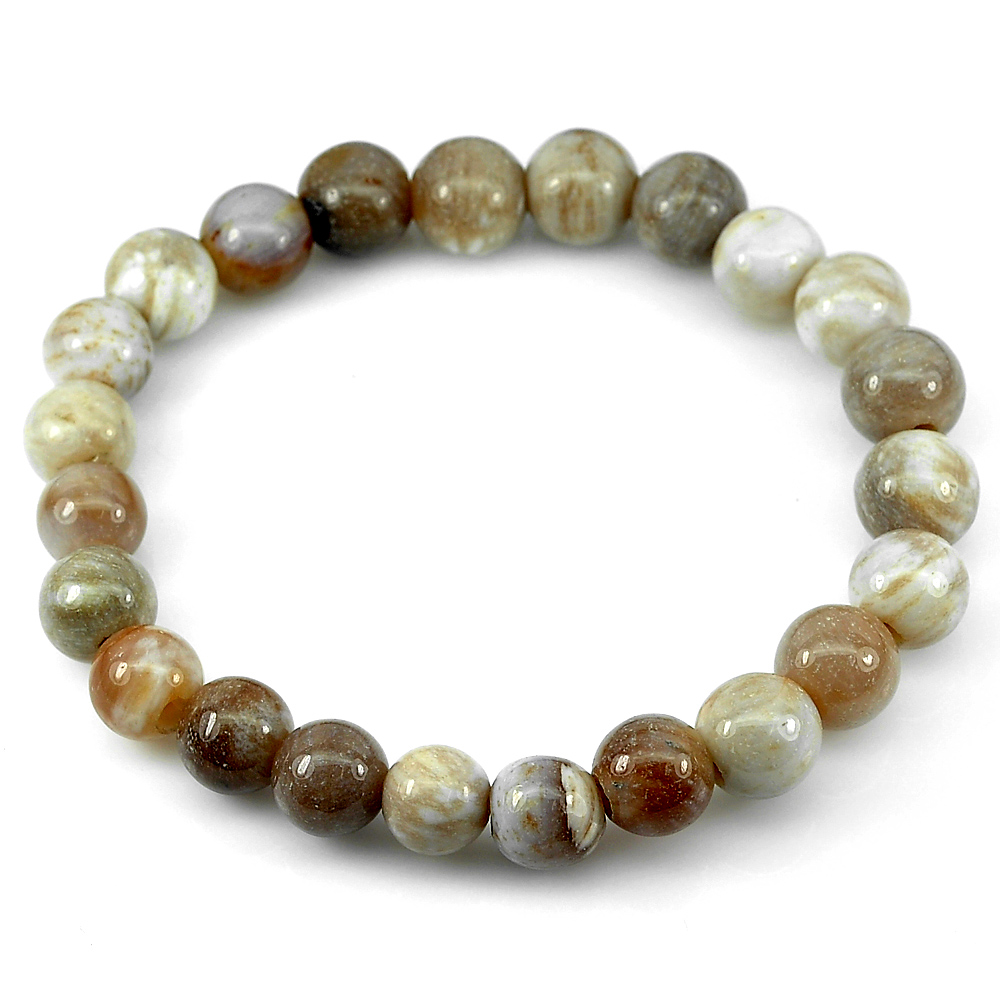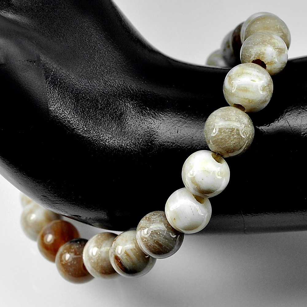84.44 Ct. Good Natural White Brown Petrified Wood Unique Pattern Bracelet 7 Inch