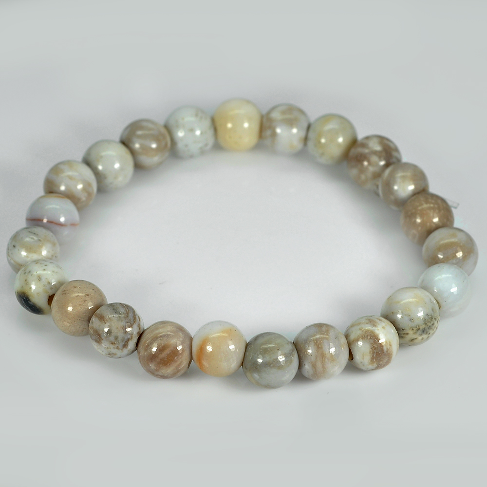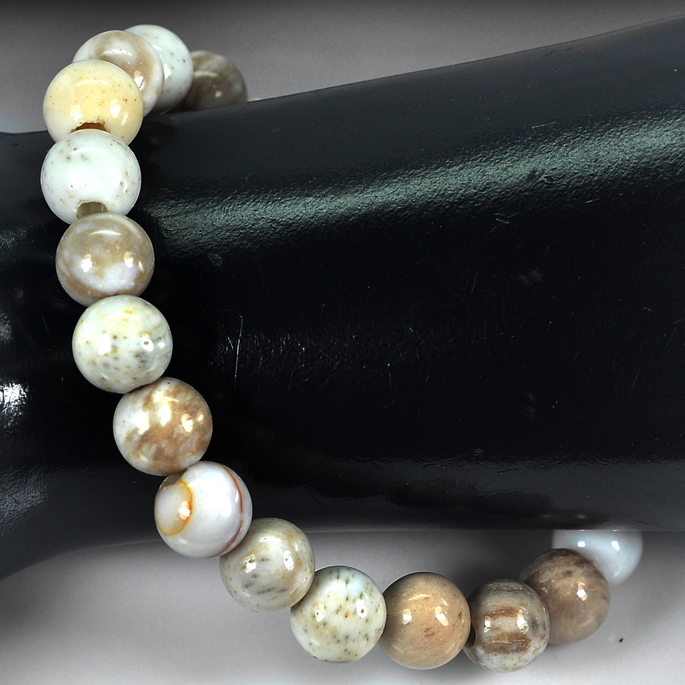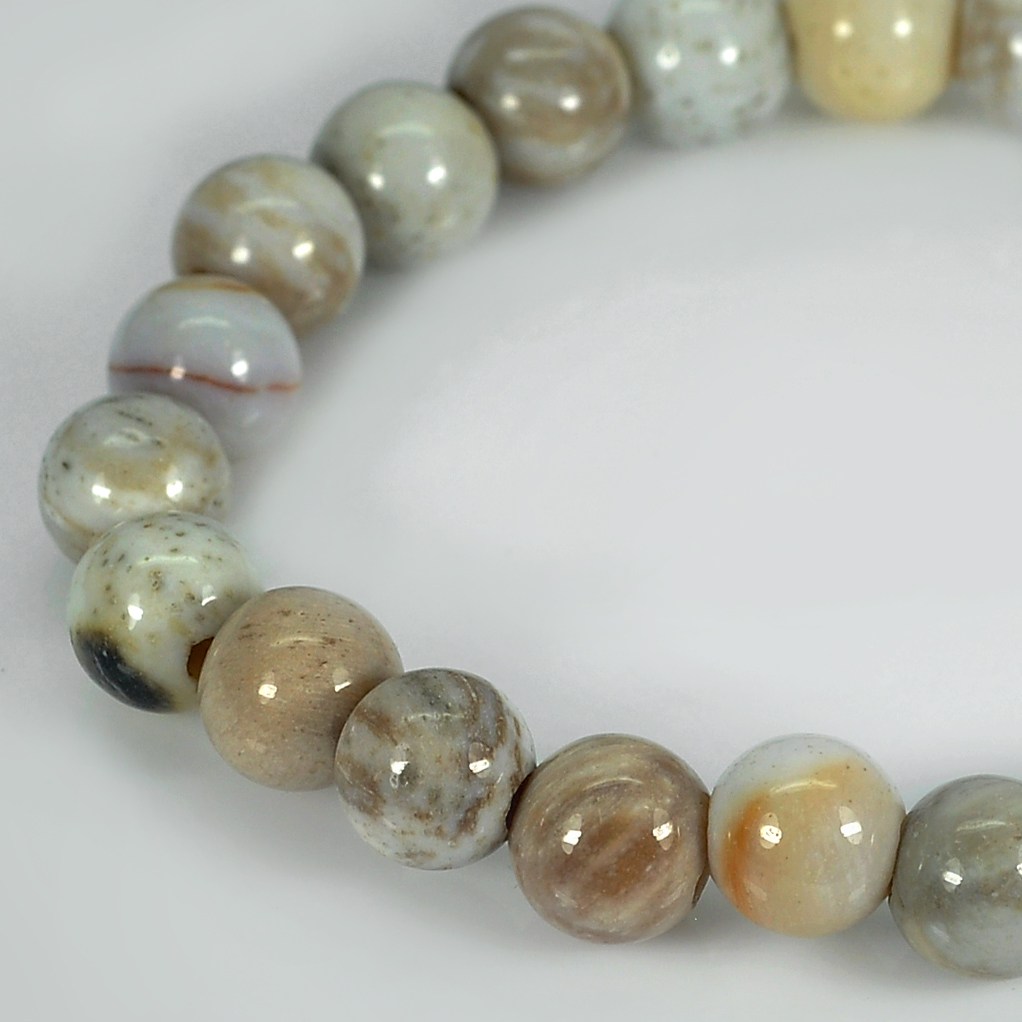 87.13 Ct. White Brown Unique Pattern Natural Petrified Wood Bracelet 8 Inch.