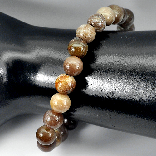 88.89 Ct. Unheated Brown Natural Petrified Wood Unique Pattern Bracelet 8 Inch.