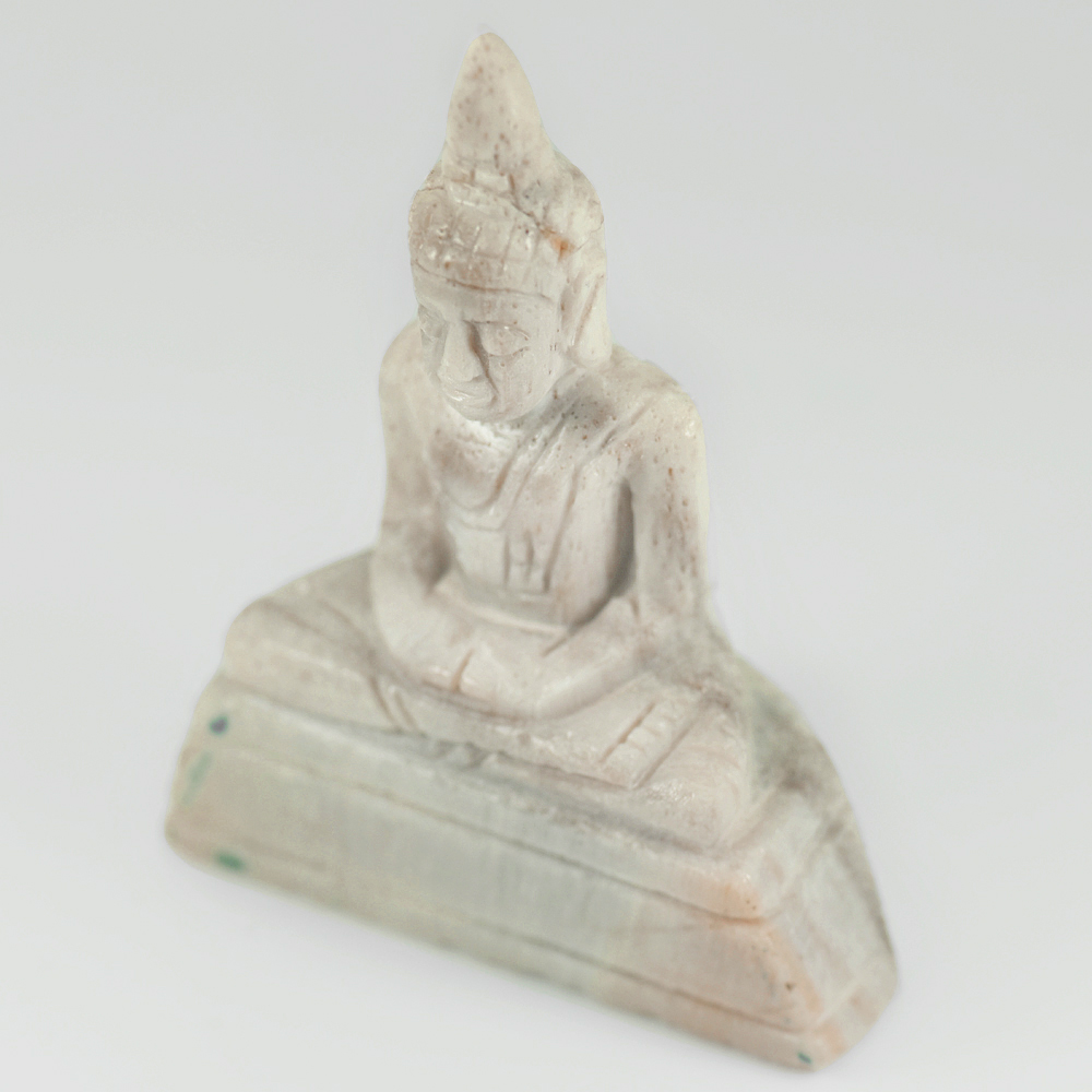 254.41 Ct. Nice Natural White Brown Petrified Wood Buddha Carved