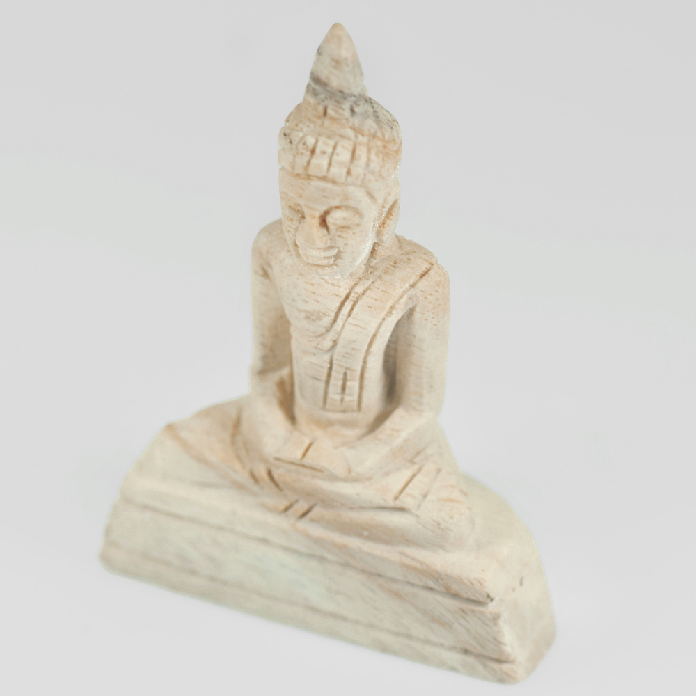 179.06 Ct. Nice Natural White Brown Petrified Wood Buddha Carved