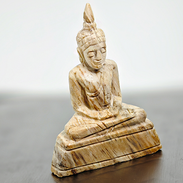194.01 Ct. Nice Natural White Brown Petrified Wood Buddha Carved
