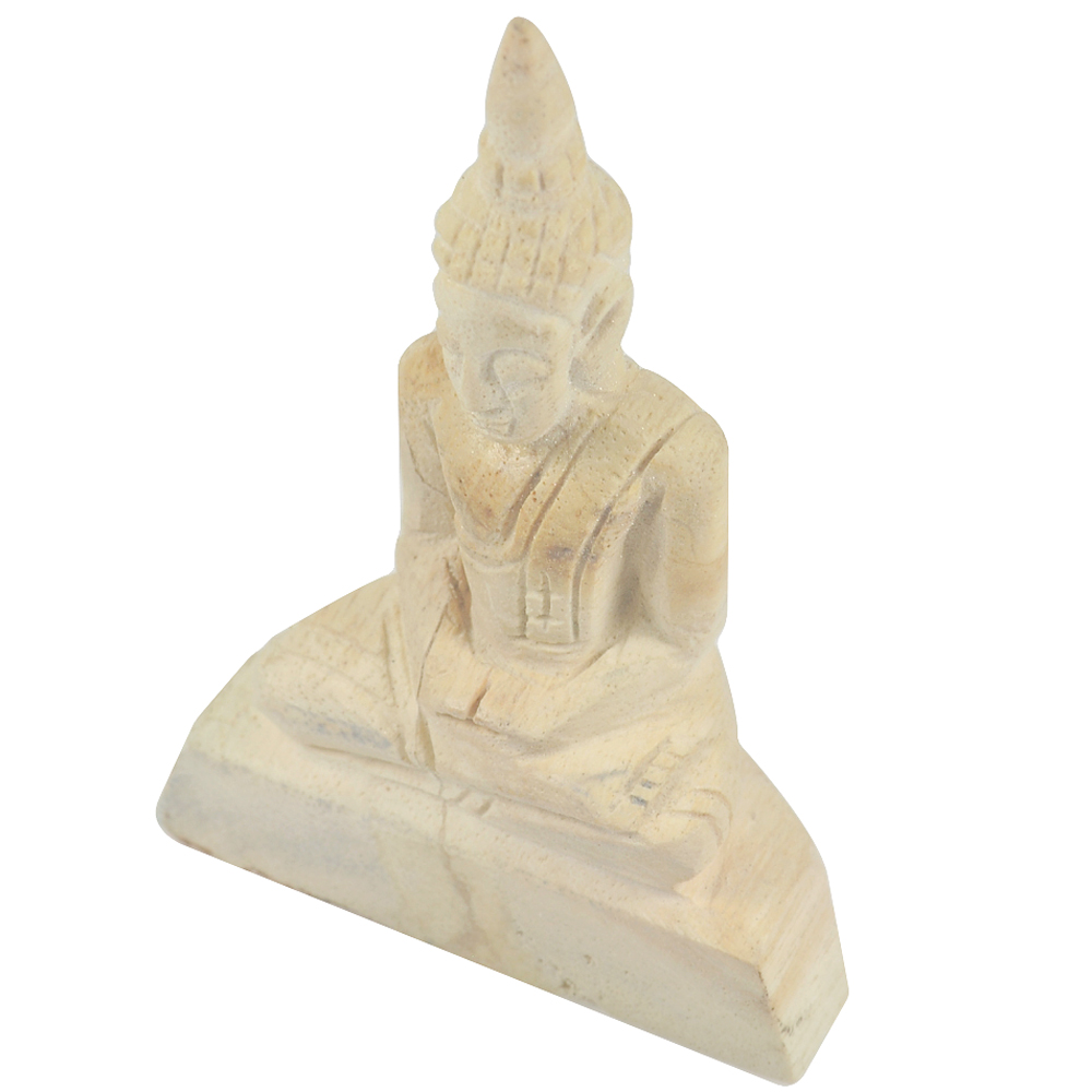 Natural White Brown Petrified Wood 145.50 Ct. Buddha Carved 73 x 52 Mm Gemstone