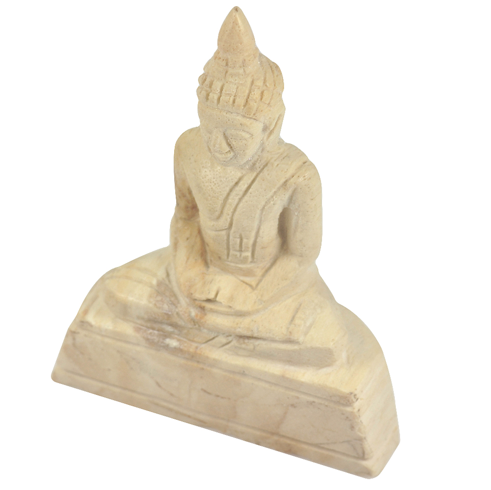 Natural White Brown Petrified Wood 193.23 Ct. Buddha Carved 70 x 55 Mm Gemstone