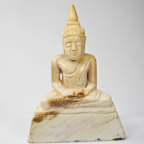 208.00 Ct. Nice Natural White Brown Petrified Wood Buddha Carved