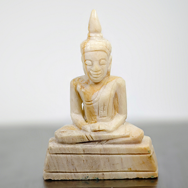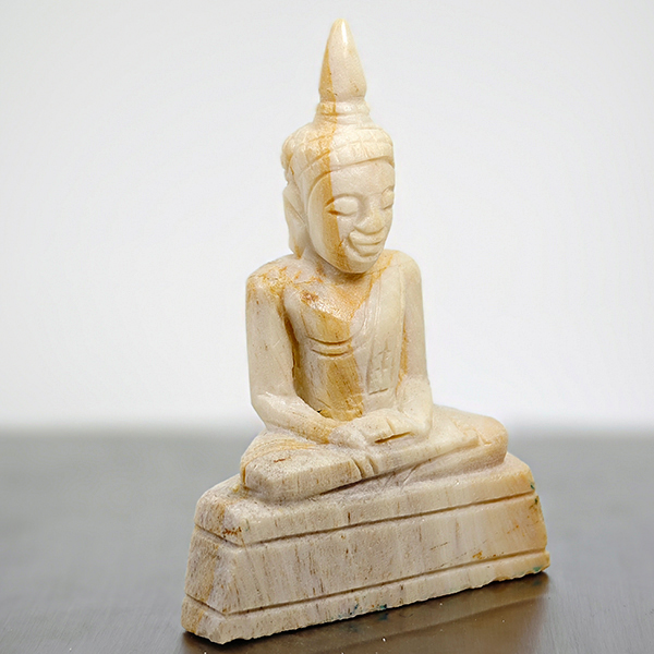 242.09 Ct. Nice Natural White Brown Petrified Wood Buddha Carved