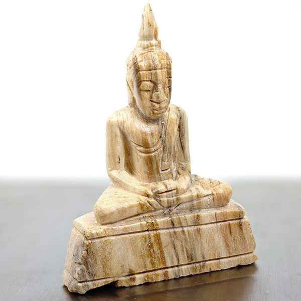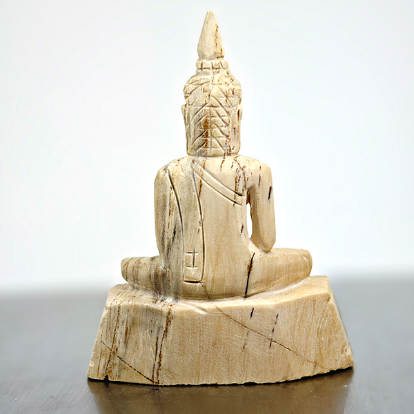 214.32 Ct. Nice Natural White Brown Petrified Wood Buddha Carved
