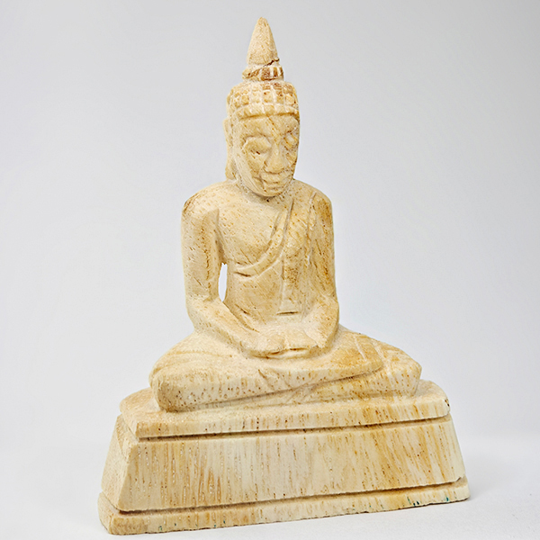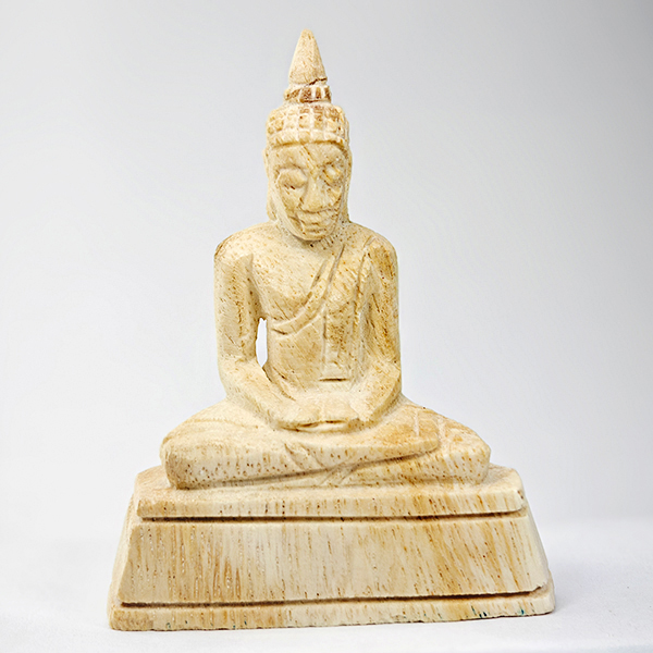 182.16 Ct. Nice Natural White Brown Petrified Wood Buddha Carved