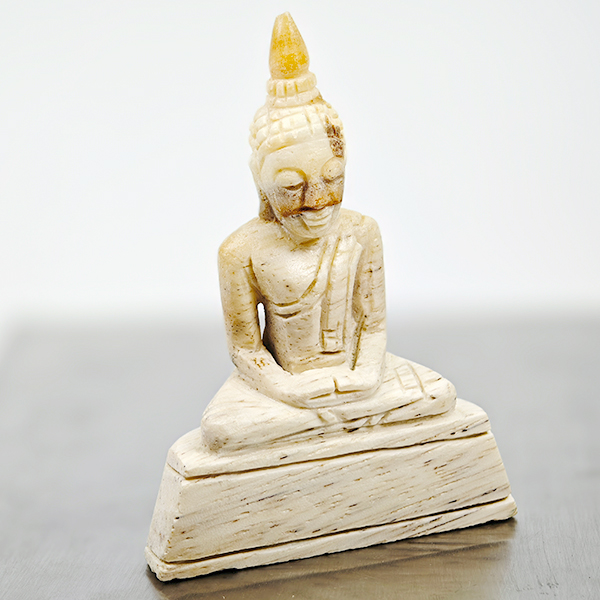 181.88 Ct. Nice Natural White Brown Petrified Wood Buddha Carved
