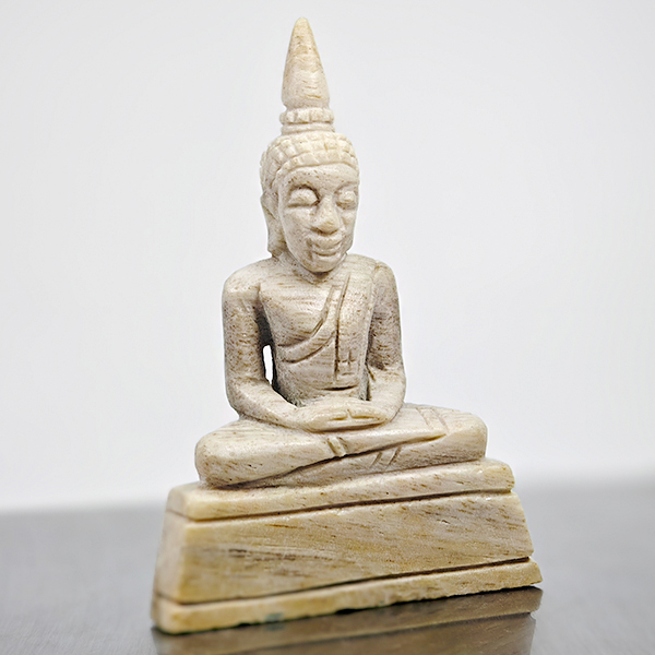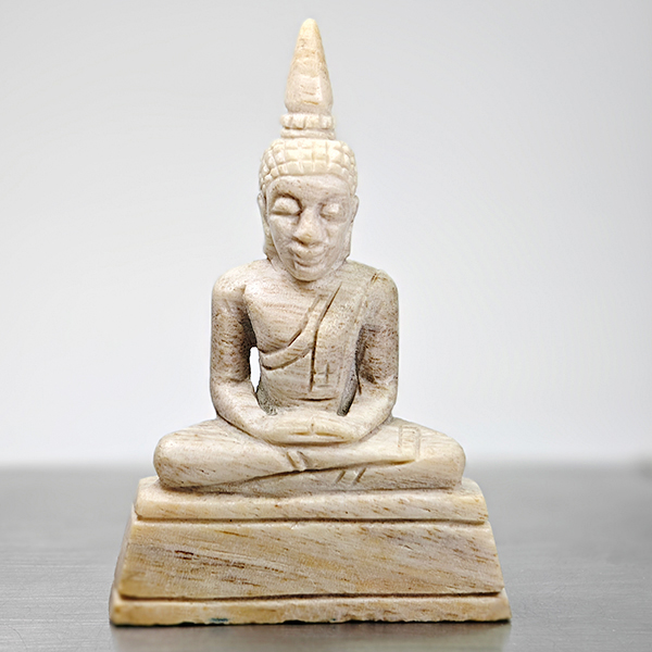 210.84 Ct. Nice Natural White Brown Petrified Wood Buddha Carved