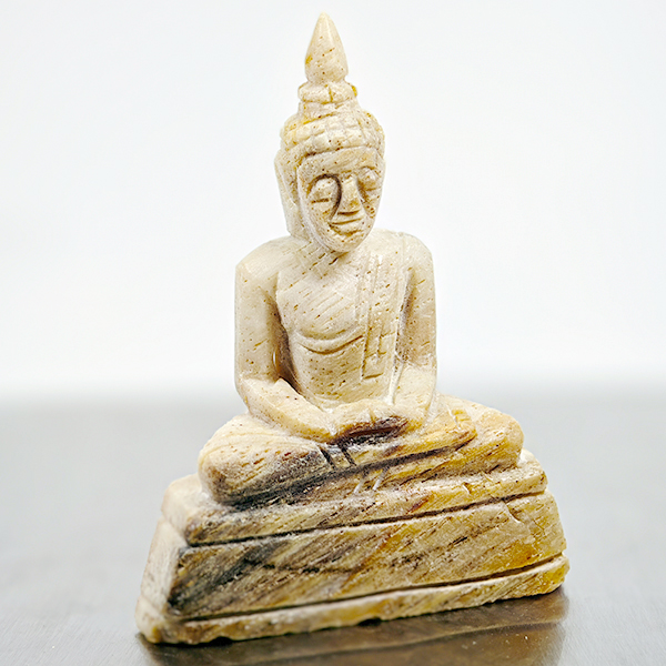 236.51 Ct. Nice Natural White Brown Petrified Wood Buddha Carved