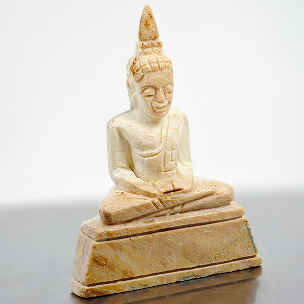 205.60 Ct. Nice Natural White Brown Petrified Wood Buddha Carved