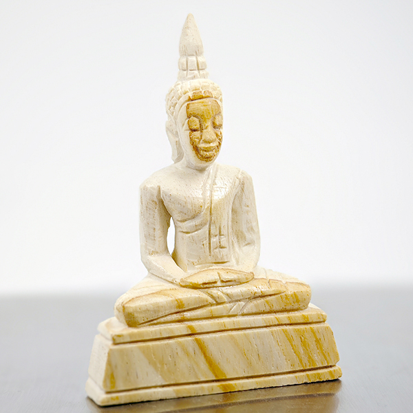 160.42 Ct. Nice Natural White Brown Petrified Wood Buddha Carved