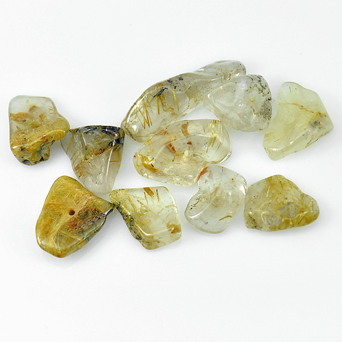24.96 Ct. 10 Pcs. Natural Gemstone Golden Rutilated Quartz Drilled Shape