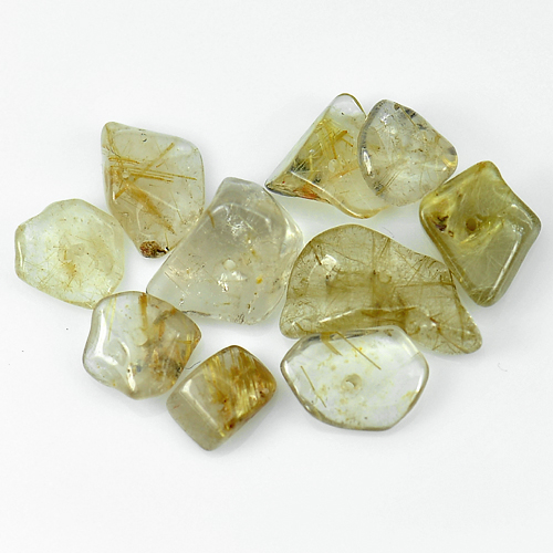 25.55 Ct. 10 Pcs. Natural Golden Rutilated Quartz With Drilled