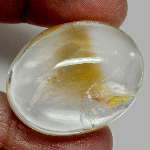 White Gold Rutilated Quartz 92.06 Ct. Oval Cabochon 33 x 26 Mm. Natural Gem